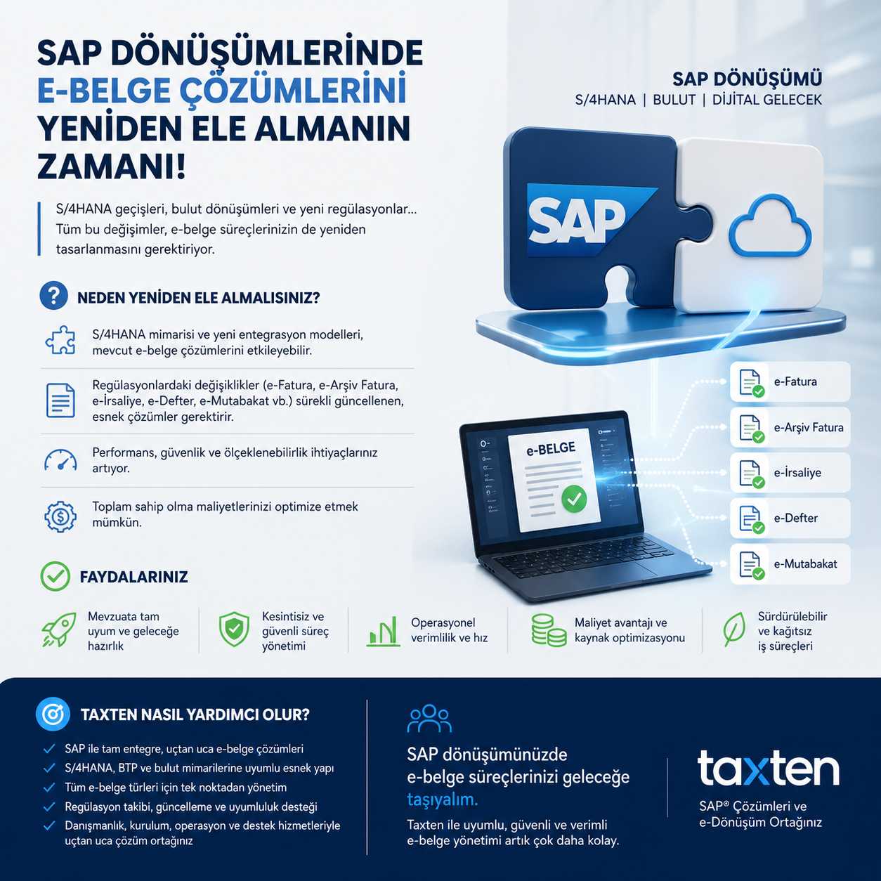 SAP dönüşümünüzden maksimum verimi almak istiyorsanız, e-belge süreçlerinizi yeniden değerlendirmek artık bir tercih değil, zorunluluktur.